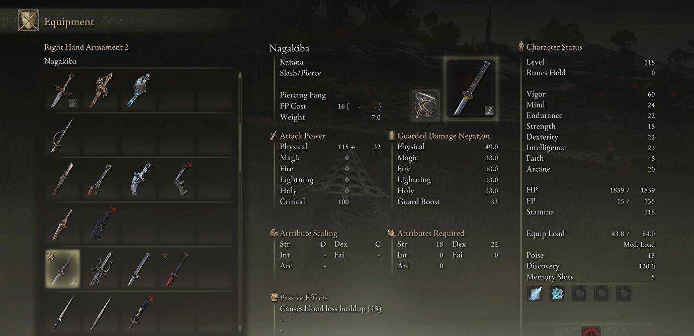 Нагакиба имеет самую большую дальность полета среди всех вышеперечисленных катанов, а его искусство владения оружием «Пронзающий клык» направляет вас вперед, нанося прямой удар.
