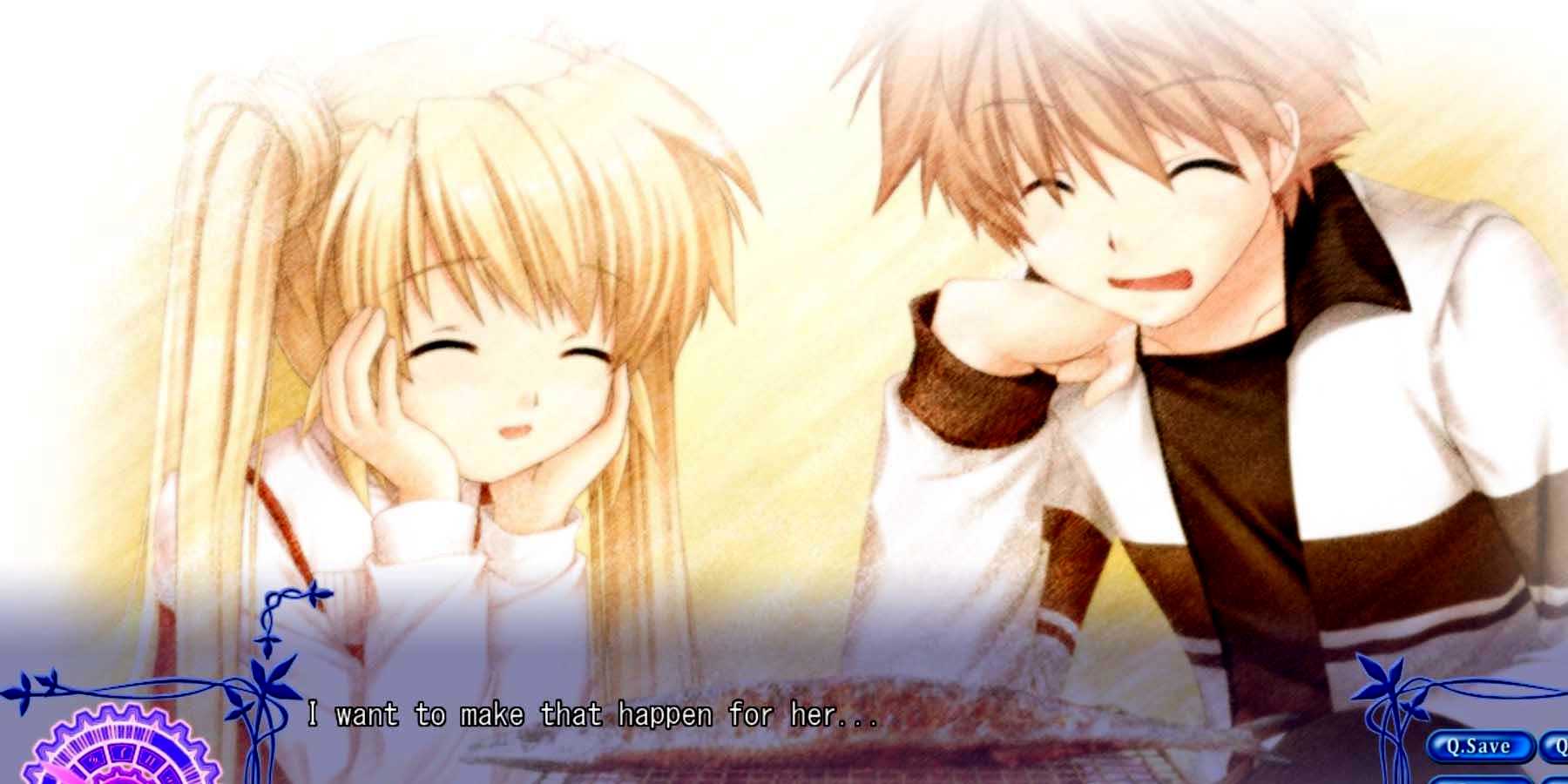 Прежде чем идти дальше, мы должны поговорить о nakige. Накиге — это портманто от японского термина, означающего «плачущая игра», цель накиге — эмоционально уничтожить игрока. Clannad самая популярная игра студии Key, которая придумала этот термин. Первая половина Clannad проходит довольно легко. Главный герой, Томоя, — делинквентный старшеклассник, борющийся со своим жестоким отцом. Он встречает одну из своих одноклассниц, болезненную, но добрую девушку по имени Нагиса. Вторая половина, происходящая после пропущенного времени, становится намного тяжелее. Мы не смеем спойлерить, но не забудьте взять с собой одеяло безопасности.