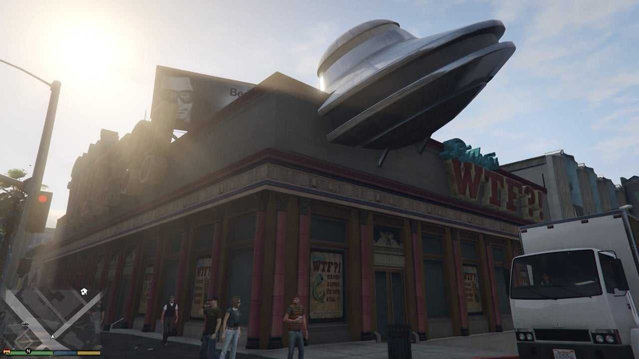 Некоторые миссии подключены к Интернету. Кстати, когда вы открываете браузер, вы заметите, что курсор меняется на перевернутый кулак со средним пальцем вместо указательного. Почти в каждом уголке Лос-Сантоса можно найти и другие моменты, связанные с инопланетными геймерами.