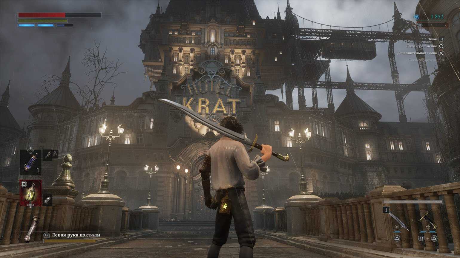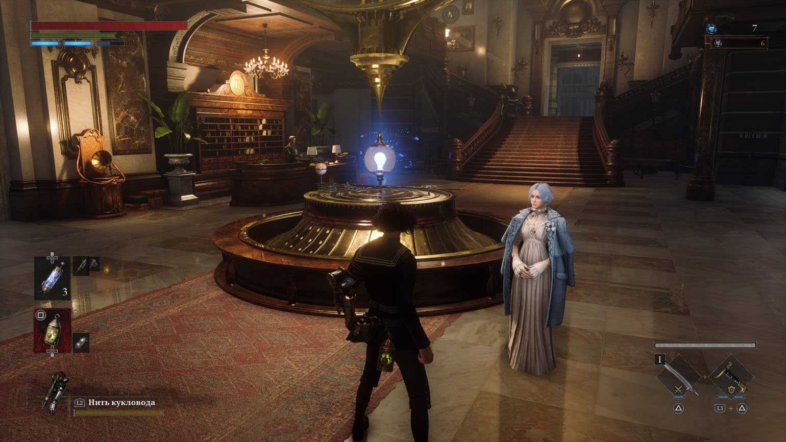 В Lies of P достаточно и других заимствований из Bloodborne: здесь тоже есть фонари, у которых герой пополняет здоровье, и девушка-служанка, предлагающая повысить его уровень. А отель «Крат», который выполняет функции хаба, содержит узнаваемые черты Центрального храма Ярнама и Сна Охотника.