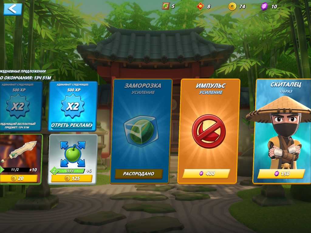 Бонусные итемы. При игре в Fruit Ninja на Андроид, игроки могут получать бонусные свойства, которые помогают в достижении рекордных результатов и упрощают процесс игры. Например, игрок может получить вещь, которая увеличивает количество фруктов в игре или бустер, дающий время плавательнойдоски.