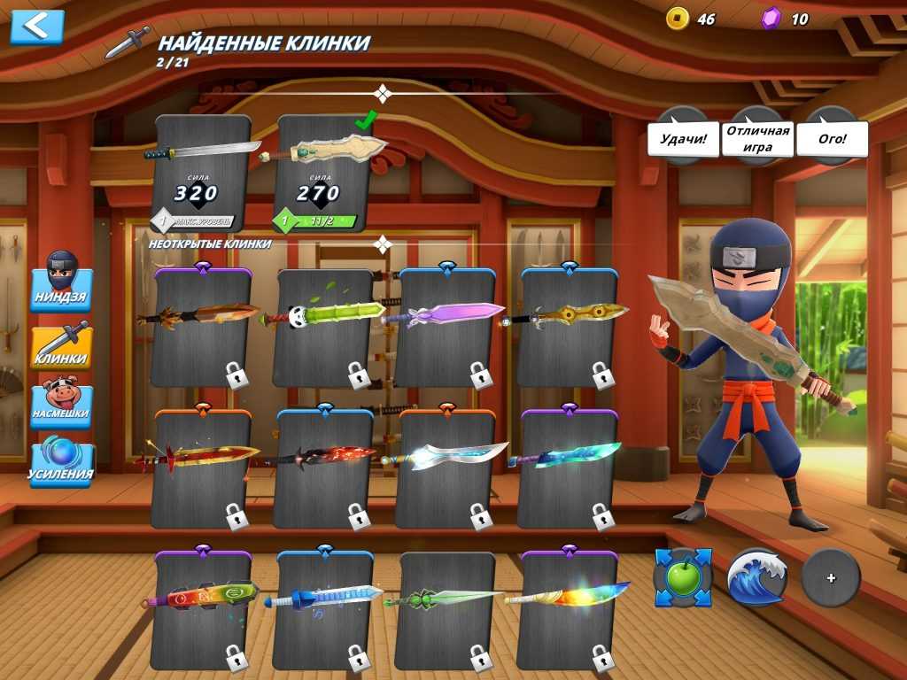 Клинки весьма разнообразны, каждый обладает набором бонусов. В игре их 21 штука.