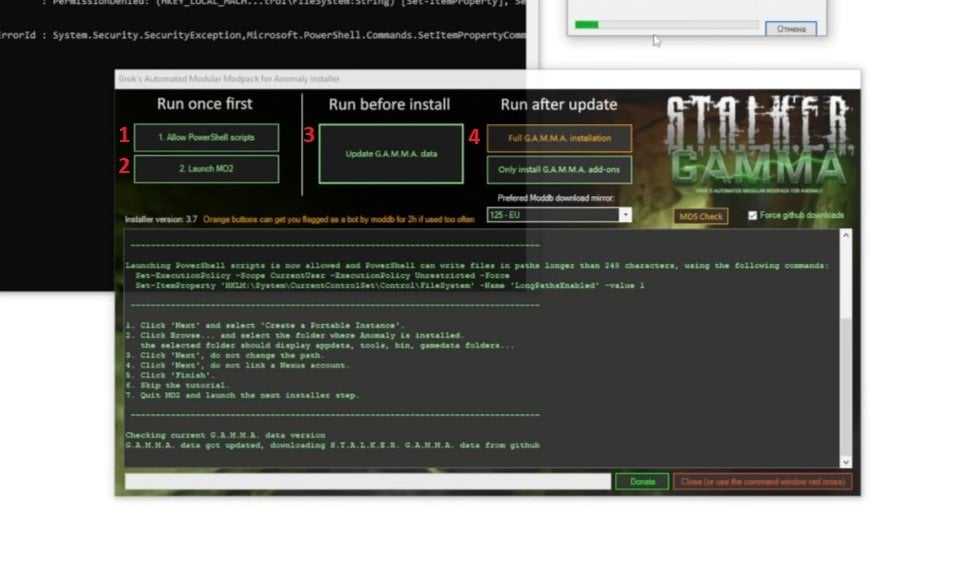 - Остается только скачать больше 100 модов. Не бойтесь, просто нажмите Full G.A.M.M.A installation и подождите. Процесс может занять много времени.