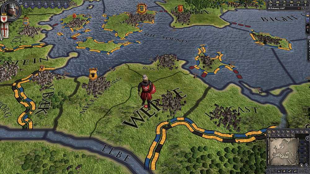 В игре предоставляется карта, с помощью которой можно следить на свободными территориями. При достаточном количестве ресурсов можно отправиться в завоевательный поход, забрать часть земель силой или договорится о выплатах. Выплаты будут поступать на счет страны, их можно использовать для покупки новых сооружений, оружия, договариваться о дополнительной армии или помогать соседям.
