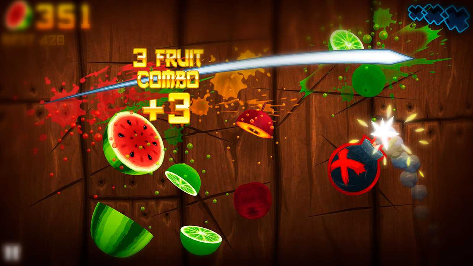Нарезка фруктов еще никогда не была настолько увлекательной. Игра выпущена еще в 2010 году и ориентирована преимущественно на мобильные устройства. Для победы необходимо разрезать каждый пролетающий фрукт, не задевая сторонние предметы. Геймплей максимально простой и логичный, а среди особенностей выделяются: