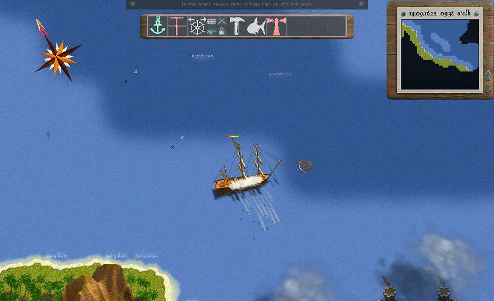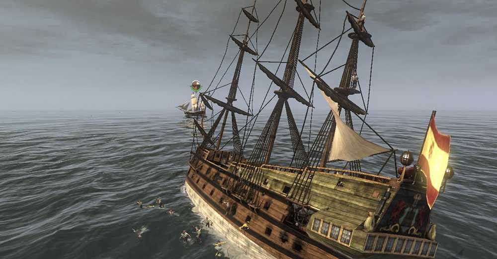Действие в этой игре про корабли происходит на большой территории, где есть даже небольшие островки, на которые можно высаживаться. Модель моря проработана отлично, плюс она очень тесно связана с погодными условиями. Игроку придется выполнять свои задания не только в штиль или спокойную погоду, но и даже в шторм.