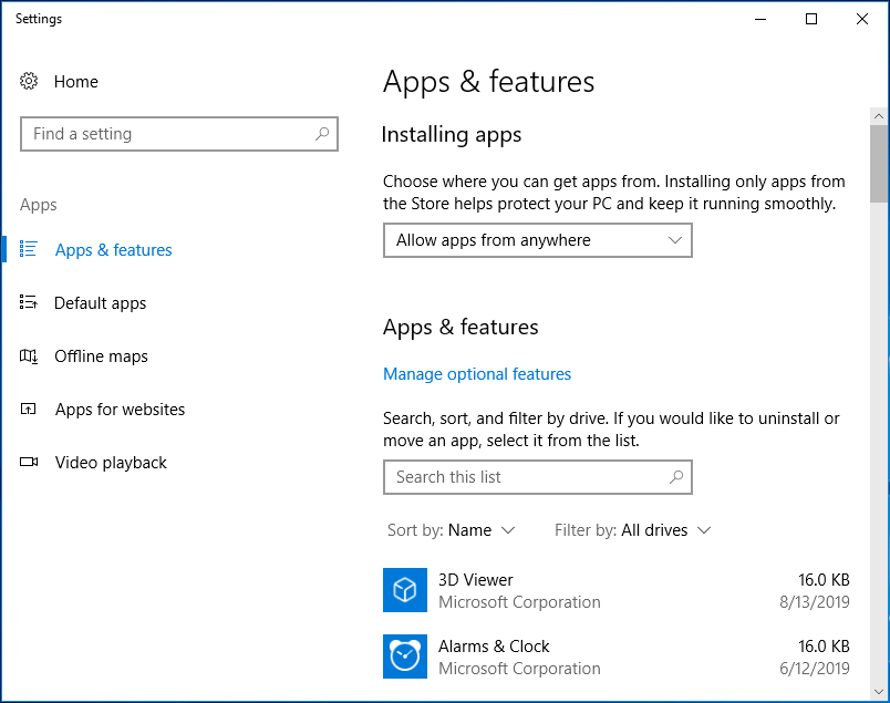 - Кликните на пункт Система и выберите Приложения и возможности в списке слева.