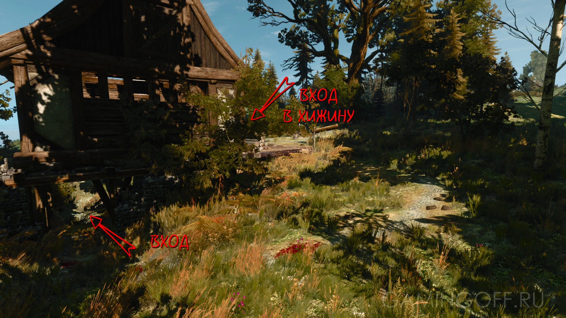 Заходите внутрь хижины, лутайте все, что хотите. В комнате с кроватью будет сундук, который пока что не открыть. Далее осмотрите на полу загадочные заметки. Вы уже должны были заметить на мини-карте иконку пещеры.