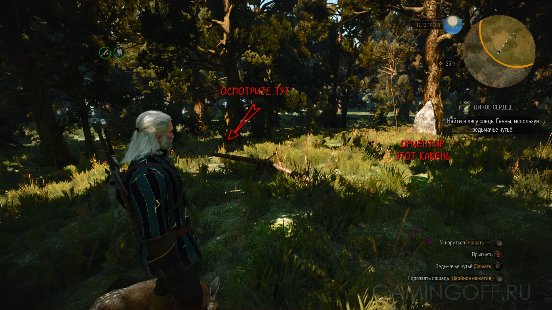 Найти в лесу следы Ганны, используя ведьмачье чутьё