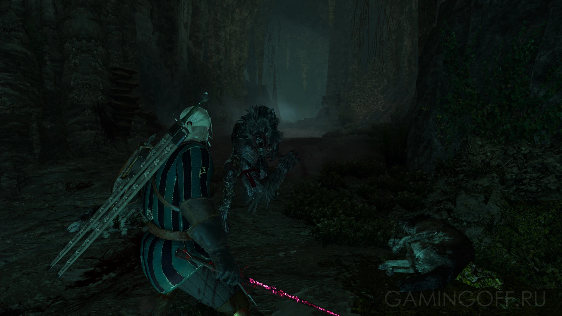 Вместе с волколаком в пещере появятся несколько волков. Их лучше прикончить в начале, чтобы после они не мешались в борьбе с монстром
