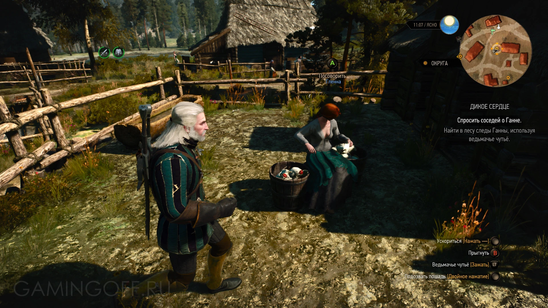 Отправляйтесь в деревню «Большие сучья» и поговорите с местным охотником Нелленом. Он расскажет Геральту, что пять дней назад его жена Ганна ушла в лес и не вернулась. Поиски своими силами результата не дали и поэтому охотник решил повесить объявление с призывом о помощи.