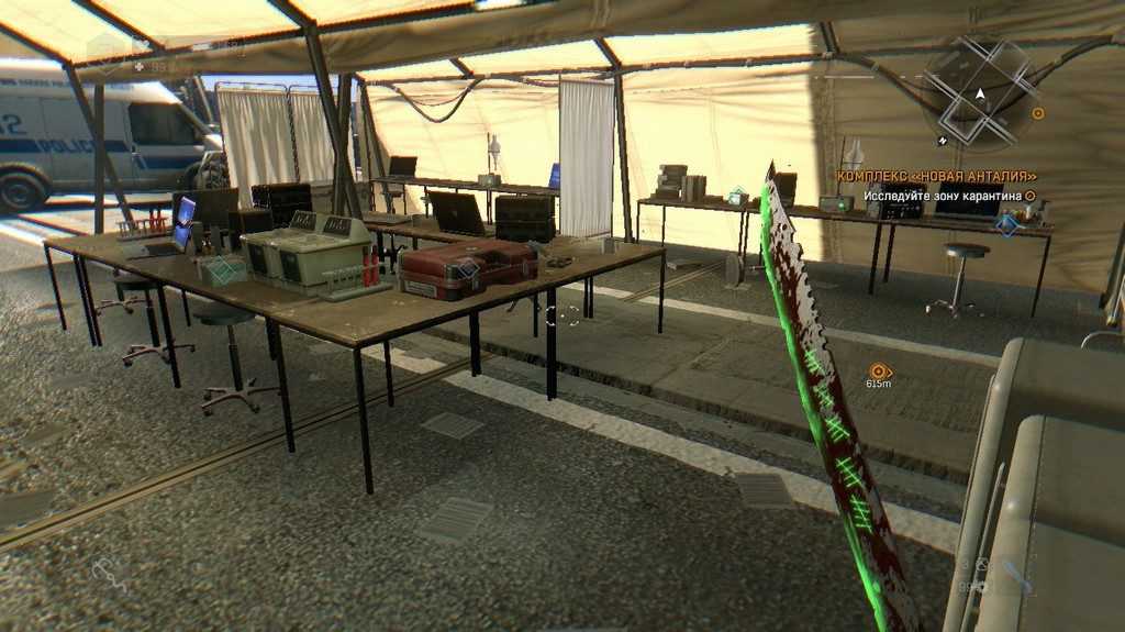 Отметим, что после завершения истории вода в этом районе пропадет, поэтому вы сможете возвратиться сюда и спокойно искать контейнеры. В любом случае не забывайте использовать Чувство выживания для обнаружения ближайших ящиков. Они будут отображаться знаком «?» на карте (мы указали расположение всех ящиков на скриншоте выше). Вам также понадобятся отмычки для их открытия, так как они заперты на замки с высоким и очень высоким уровнем сложности.