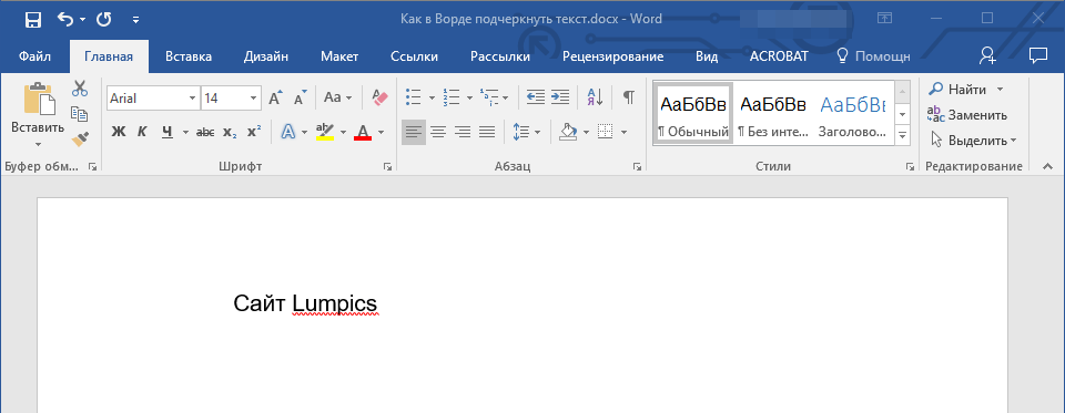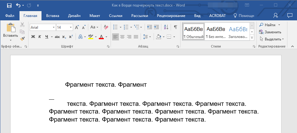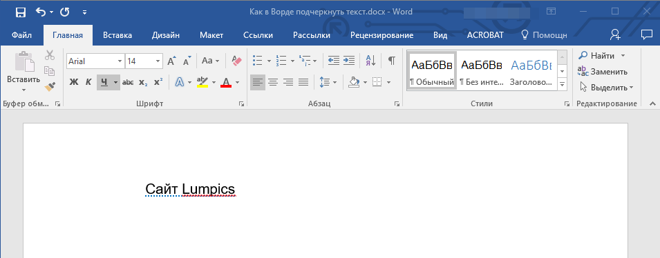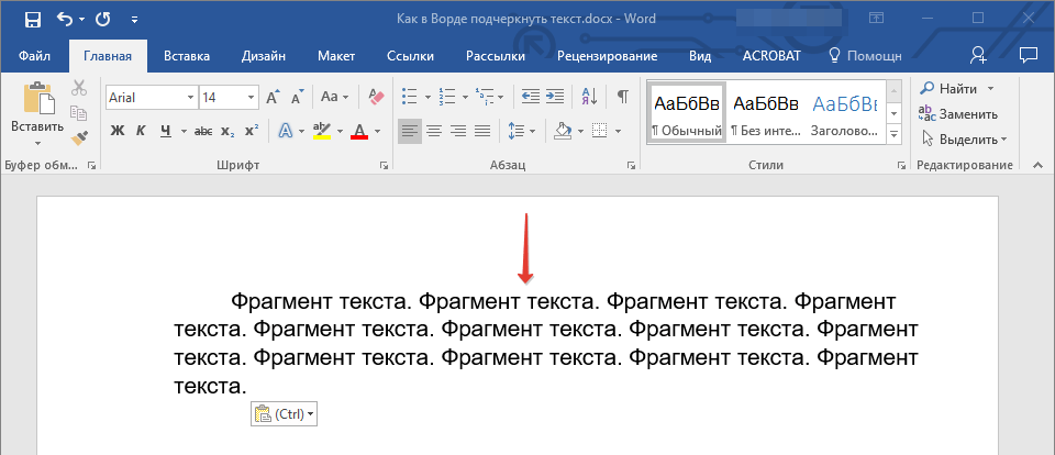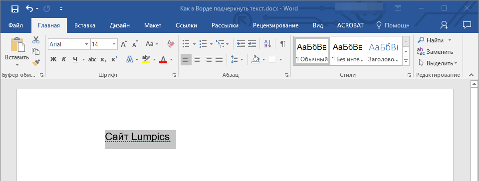 2. Нажмите кнопку “Подчеркивание” в группе “Шрифт” или клавиши “Ctrl+U”.