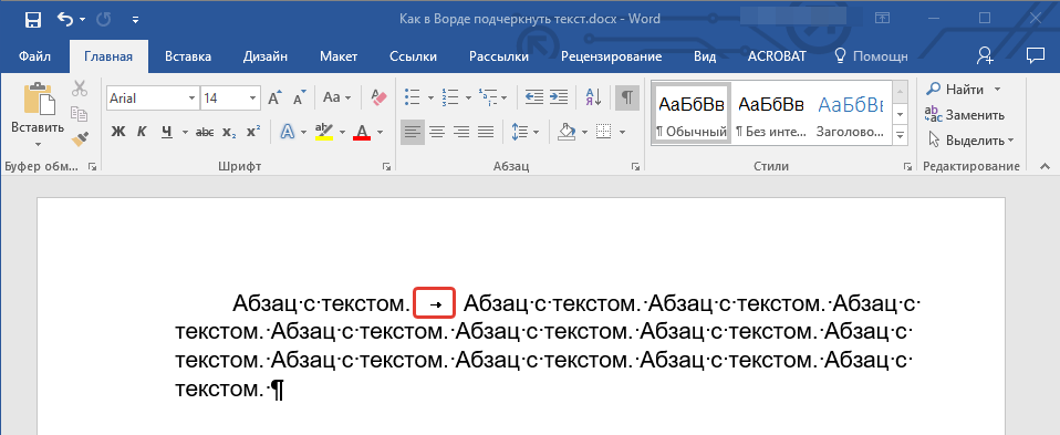 3. Выделите установленный знак табуляции (он будет отображен в виде небольшой стрелки).