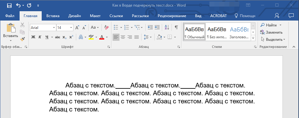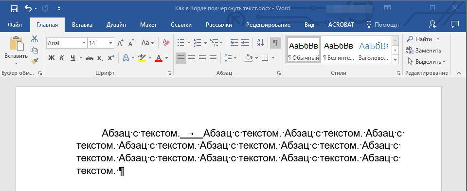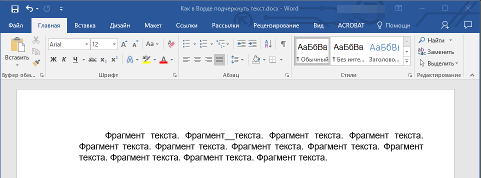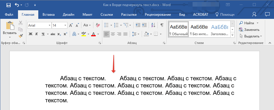 5. Подчеркивание пробела будет установлено. Если это необходимо, проделайте аналогичное действие и в других местах текста.