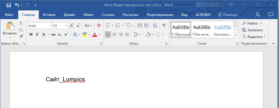 Если мы попробуем сделать это по описанным выше алгоритмам, то ничего не получится. Просто так подчеркивать пробелы программа откажется. Поэтому придется прибегать к определенным хитростям.