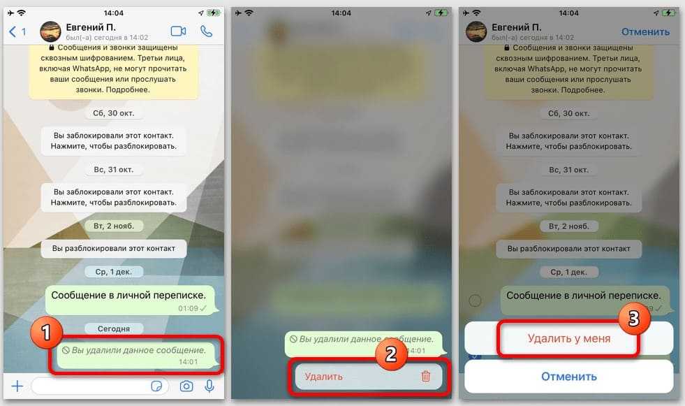 После этих действий и у отправителя, и у получателя появится надпись «Сообщение удалено».