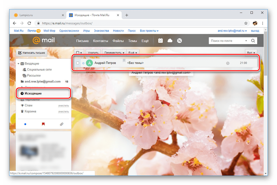 После отправки каждое письмо перемещается в раздел «Исходящие». Откройте его и выберите нужное сообщение.