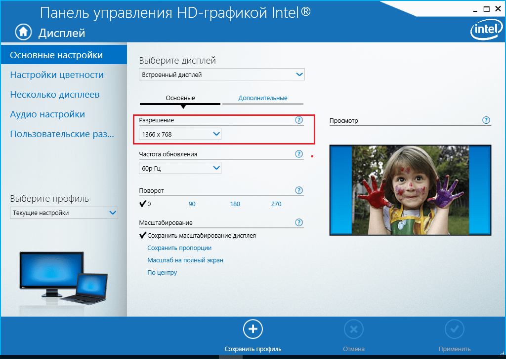 Не увеличивайте или уменьшайте размер шрифта и иконок с помощью изменения параметров разрешения дисплея. Обычно по умолчанию установлено оптимальное разрешение, которое обеспечивает наилучшее качество отображения картинки.
