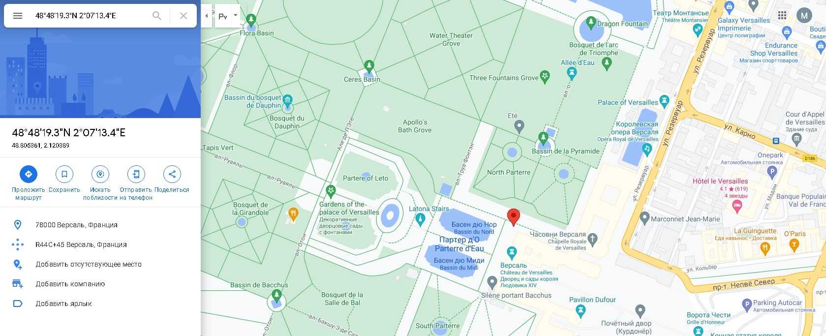 Как искать место по координатам на картах