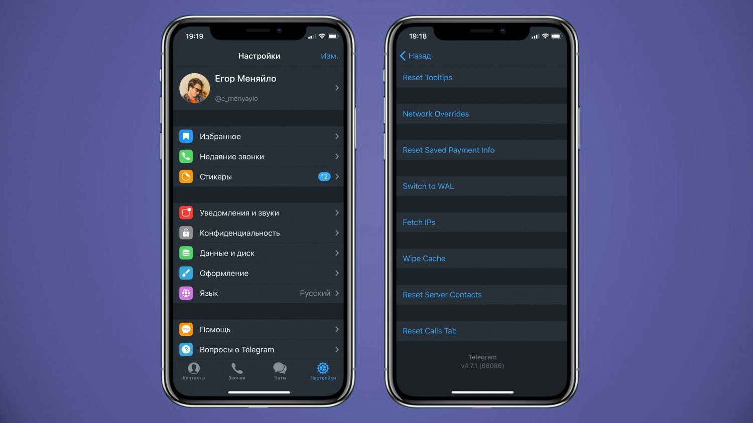 Из настроек