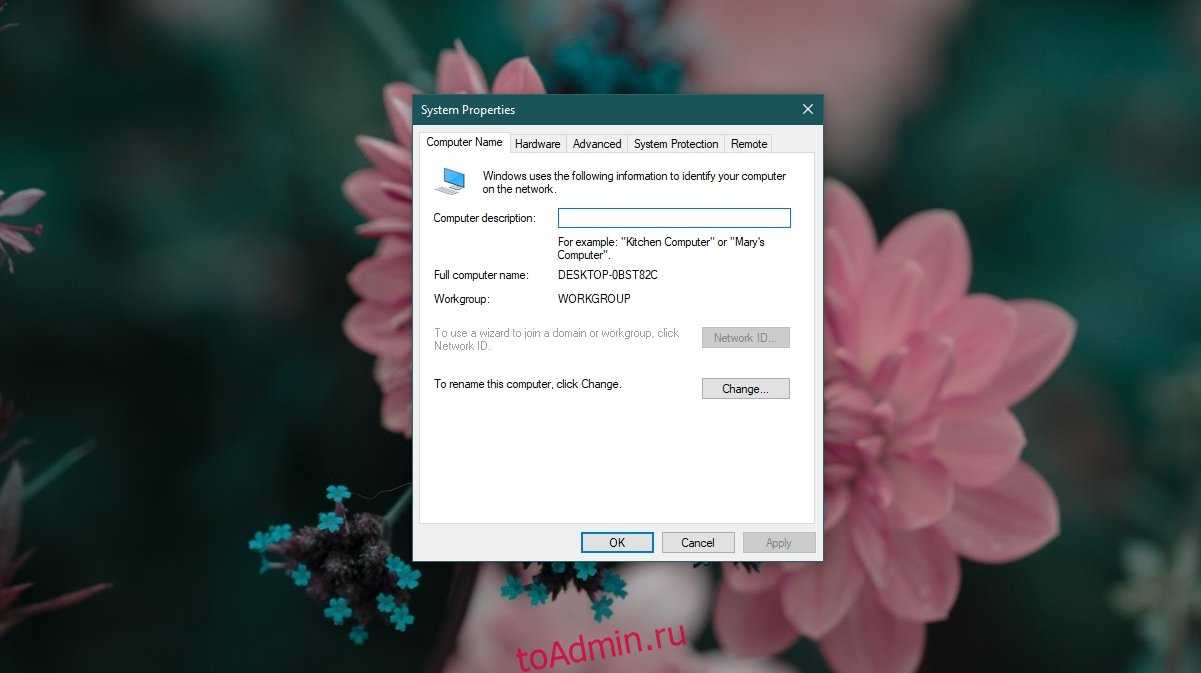- в Свойства системы окно, нажмите на Компьютер Имя вкладка