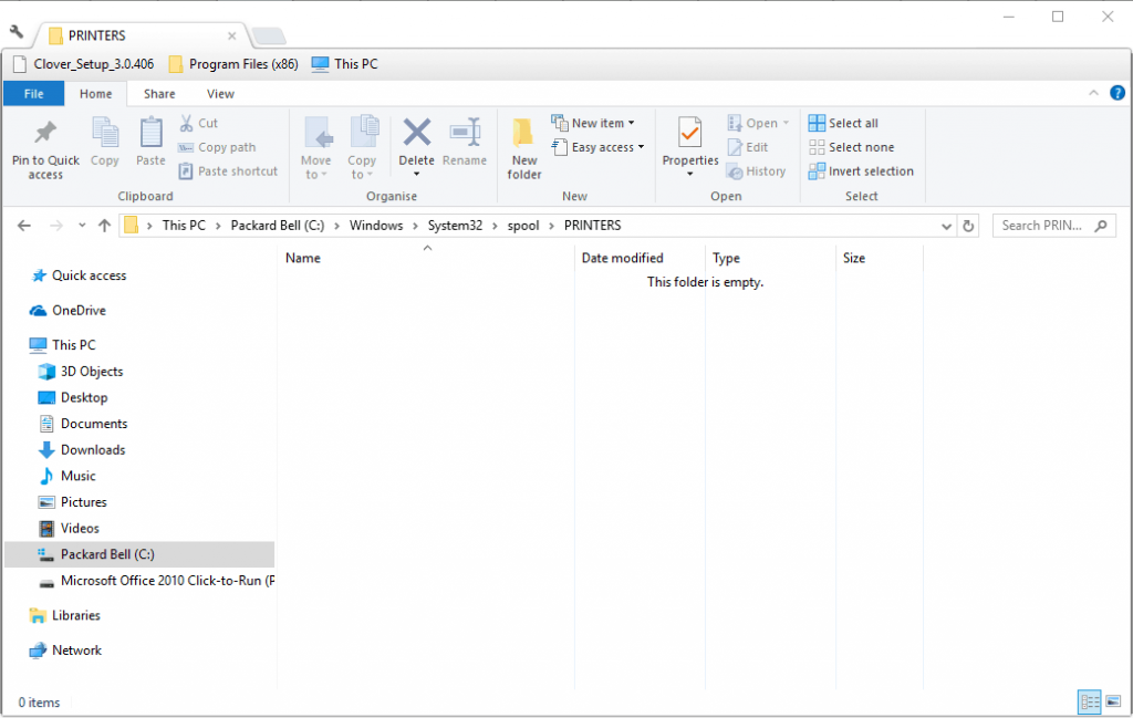 - Затем введите «C: \ WINDOWS \ System32 \ spool \ PRINTERS» в строке пути папки Проводника и нажмите клавишу «Return».
