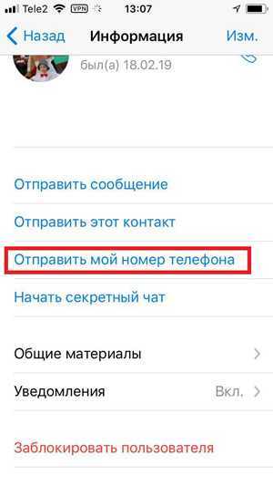 - Открыть диалог с пользователем. Нажать на три точки в верхнем правом углу интерфейса и выбрать пункт «Отправить свой телефон». После того как собеседник вам что-нибудь напишет, смотрите контактную книгу – там появится его номер. Однако он также получит ваш.