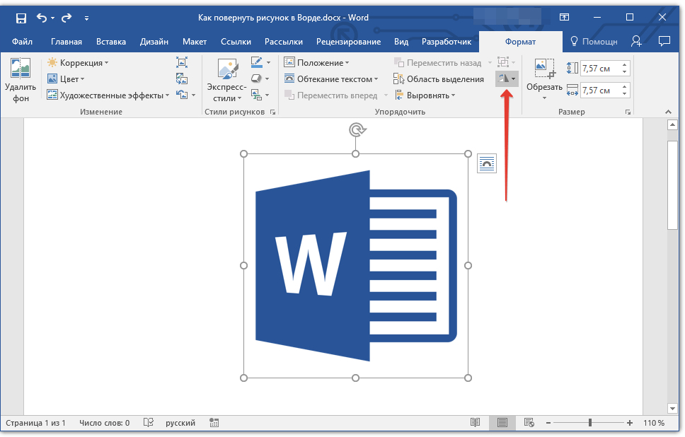 Как повернуть рисунок в Word — Кнопка Повернуть рисунок