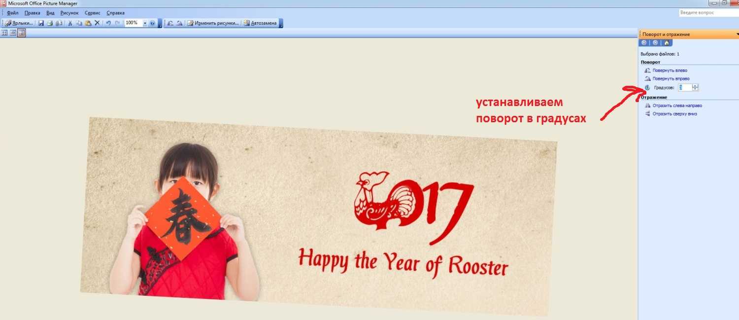 Как повернуть картинку на 90, 180, несколько градусов в Microsoft office picture manager