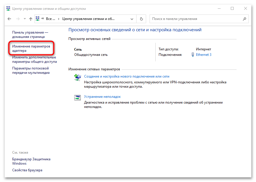 Для комфортного просмотра разделов задайте их отображение как «Крупные значки» в строке «Просмотр». Выберите раздел «Центр управления сетями и общим доступом».
