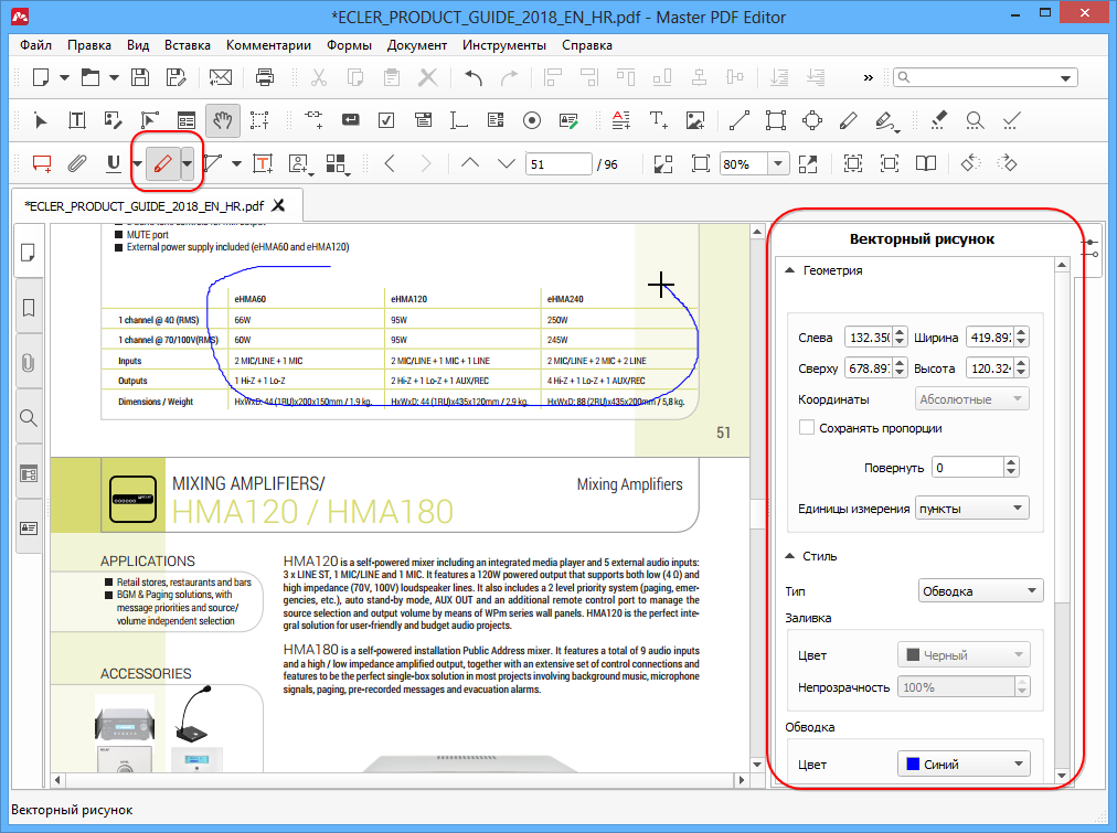 Инструменты рисования позволяют вам размещать определенные графические элементы в PDF документе, подчеркивая важность тех или иных фрагментов и привлекая внимание других авторов к оставленным вами комментариям. ПРИМЕЧАНИЕ: Не следует путать инструменты рисования с векторными изображениями. В отличие от последних, инструменты рисования служат для комментирования и не изменяют оригинальное содержимое документа, а также не печатаются