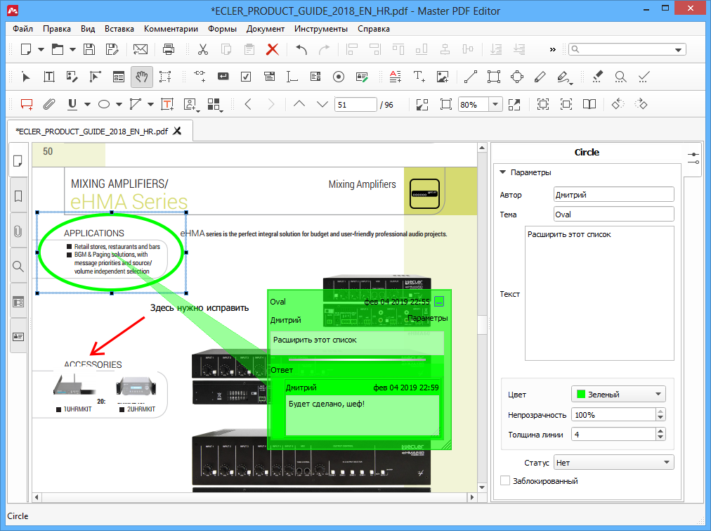 Двойной щелчок по объекту вызывает всплывающую подсказку, в которой отображается текстовый комментарий и ответы на него: