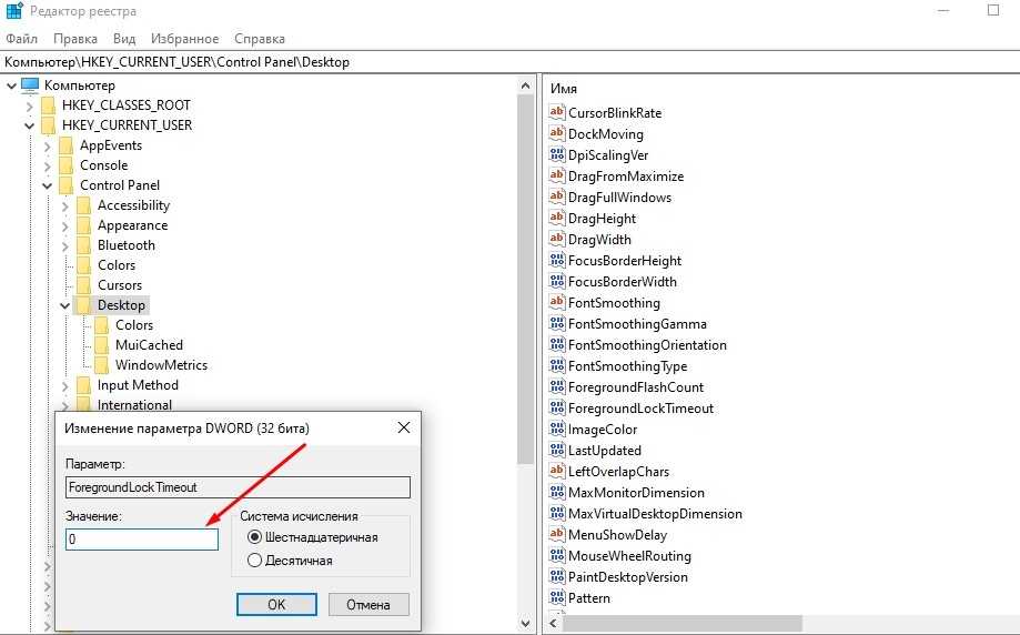 - Двойным кликом ЛКМ откройте настройки параметра «ForegroundLockTimeout».