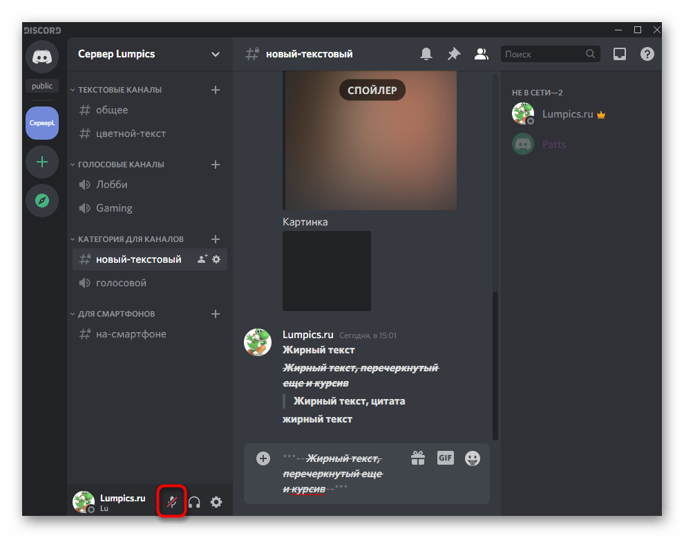 Специальная кнопка с ее изображением, появляющаяся после переключения на активный канал, отвечает за включение или выключение микрофона во время голосовых чатов. Если микрофон на значке перечеркнут красной линией, это означает, что в данный момент он отключен.