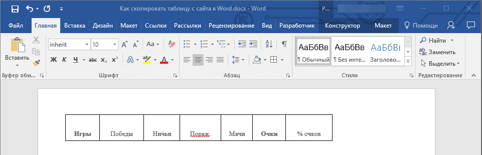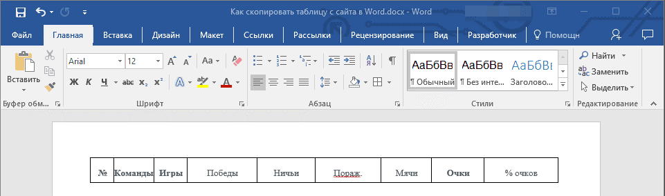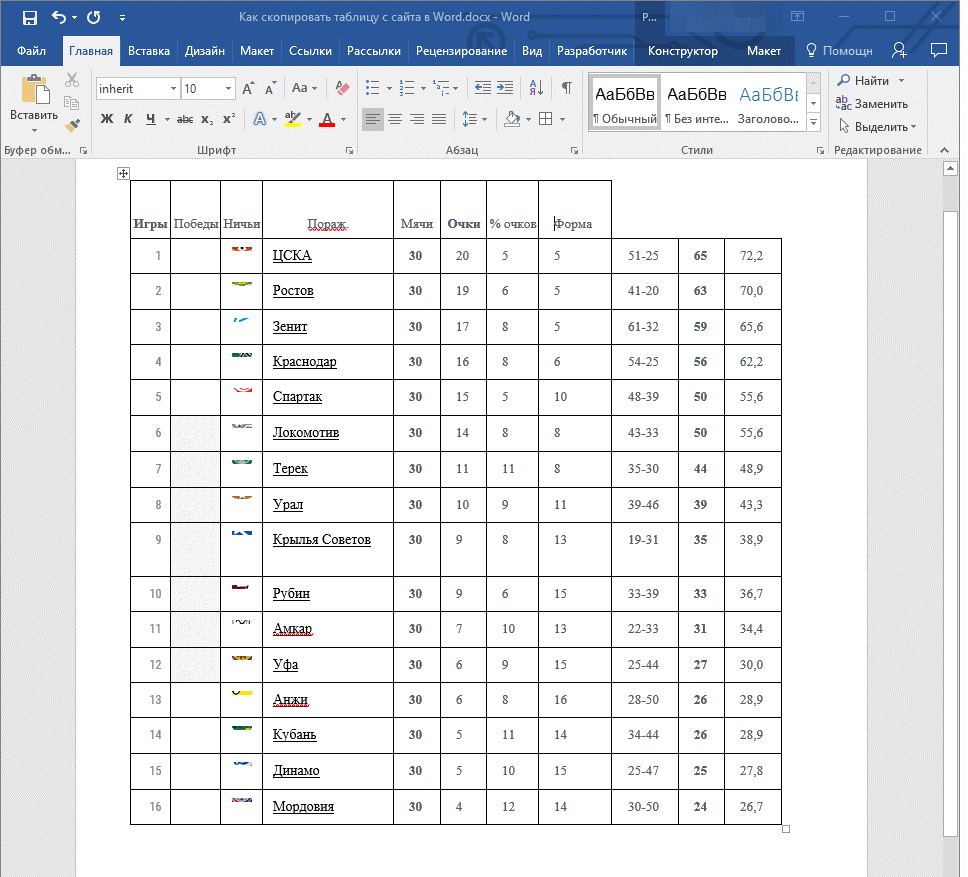 - Теперь таблица, которую вы скопировали с сайта, будет отображаться в документе Word.