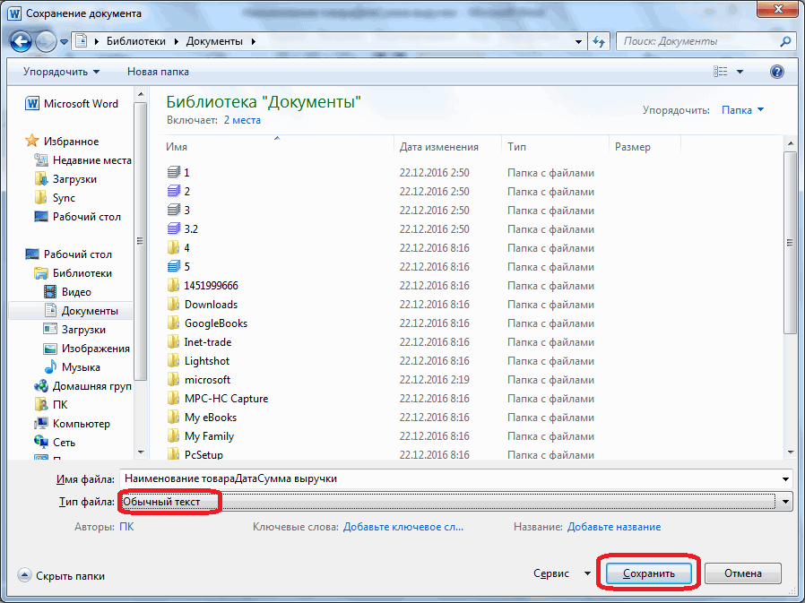 поле «Тип файла»Открываем таблицу в программе ячейке в том