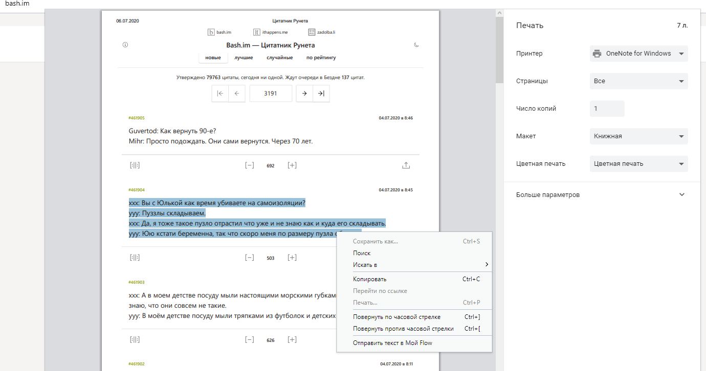 В данном случае получить защищенный текст можно, вызвав версию страницы для печати комбинацией клавиш «Ctrl + P». Работает в Chrome и ему подобных (Яндекс.Браузер, например) и в Opera. При этом будет показан упрощенный документ, в котором можно выделить и скопировать содержимое.