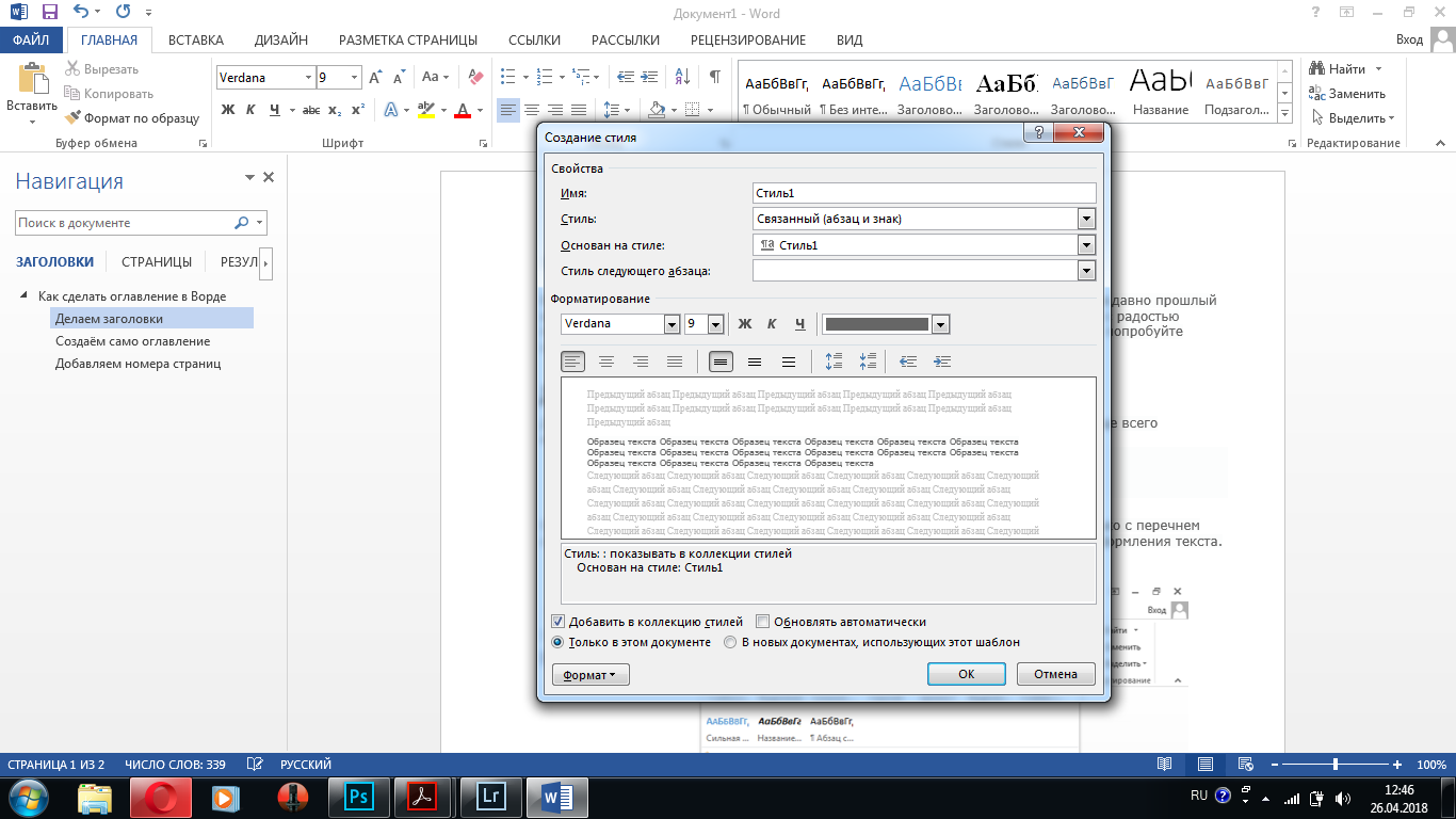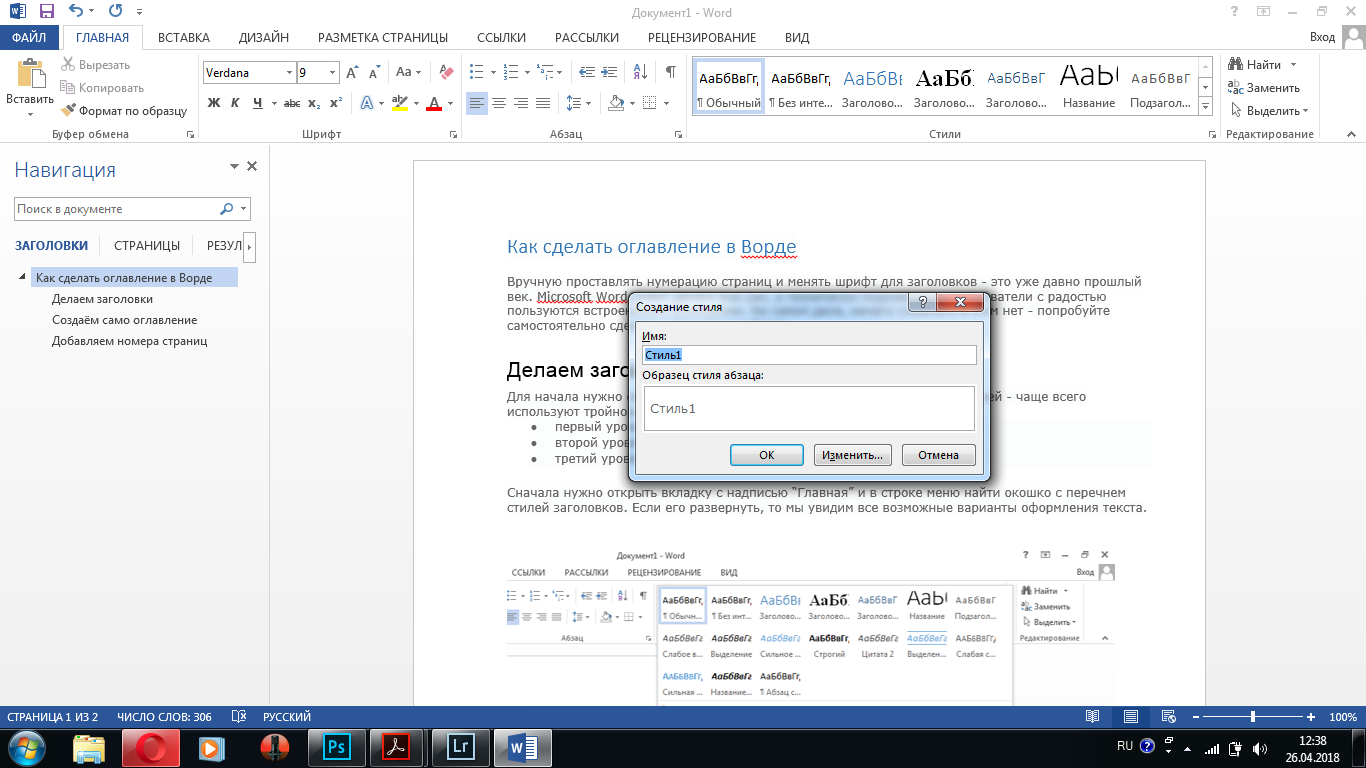 2. Использование стилей и таблицы содержания.