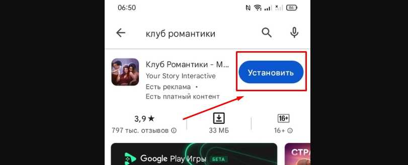 Самый простой и безопасный способ скачивания Romance Club – официальный каталог Google Play. В этом случае вам нужно всего лишь зайти в приложение, найти нужную игру в списке и нажать «Установить».