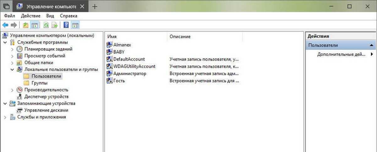 - Как просмотреть все учетные записи с помощью консоли «Управление компьютером»