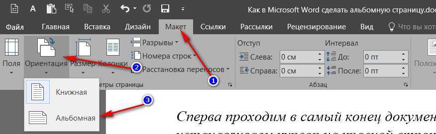 Примечание. Word автоматически вставляет разрывы разделов до и после текста с новой ориентацией страницы. Если ваш документ уже разделен на разделы, вы можете щелкнуть в разделе (или выбрать несколько разделов), а затем изменить ориентацию только для выбранных разделов.Читайте о том, как узнать, где в документах находятся разрывы разделов.