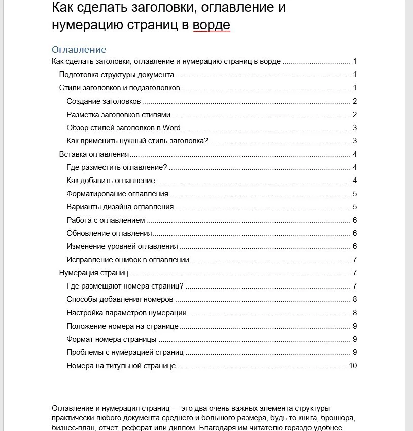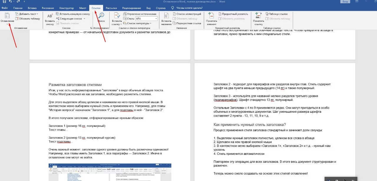 Когда весь документ готов, а заголовки размечены, можно приступать к созданию оглавления. Word сгенерирует его автоматически.