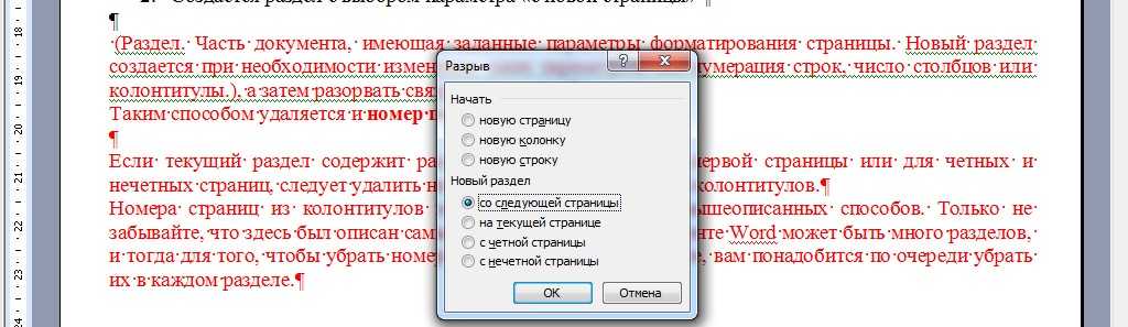 Тогда как вариант «чётная страница» и «нечётная страница» просто обеспечивают начало следующего раздела с ближайшего соответствующего требованиям места.