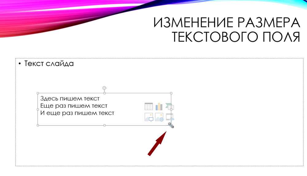 Вставка дополнительного текстового поля позволяет добавлять в макет слайда столько текста, сколько нужно.